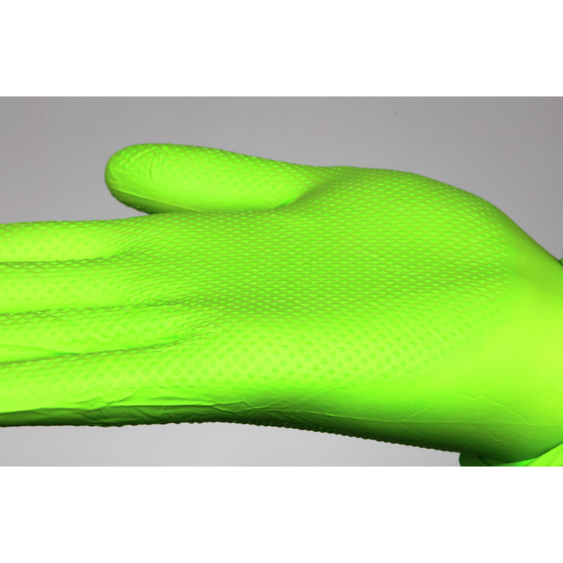 Aukščiausios kokybės nitrilo vienkartinės pirštinės, žalios, nesterilios, susukti rankogaliai, be pudros, naujoviška deimantinė tekstūra, užtikrinanti ypač tvirtą sukibimą su šlapiu, sausu ir riebiu paviršiumi, puikiai priglunda, ypač patvarios, tinka liestis su maistu, gali būti dėvima bet kuriuo būdu apvalus, AQL 1,5 Storis: apytiksl. 0,22 mm (subraižyti pirštai), apytiksl. 0,13 mm (delnas)