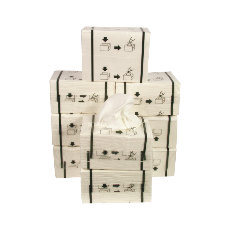 Baltas, sulankstytas valymo popierius, supakuotas į 9 plėvelės dozatorių pakuotes po 46 šluostes; taigi visoje kartoninėje dėžutėje yra 414 audinių